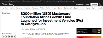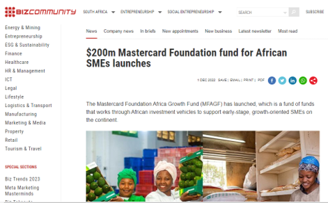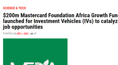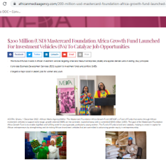 The Mastercard Foundation Africa Growth Fund (The Fund), through its managing partner, Mennonite Economic Development Associates (MEDA), engaged ACG to lead the development of, and manage the implementation of, the Communication Plan for the Mastercard Foundation Africa Growth Fund.